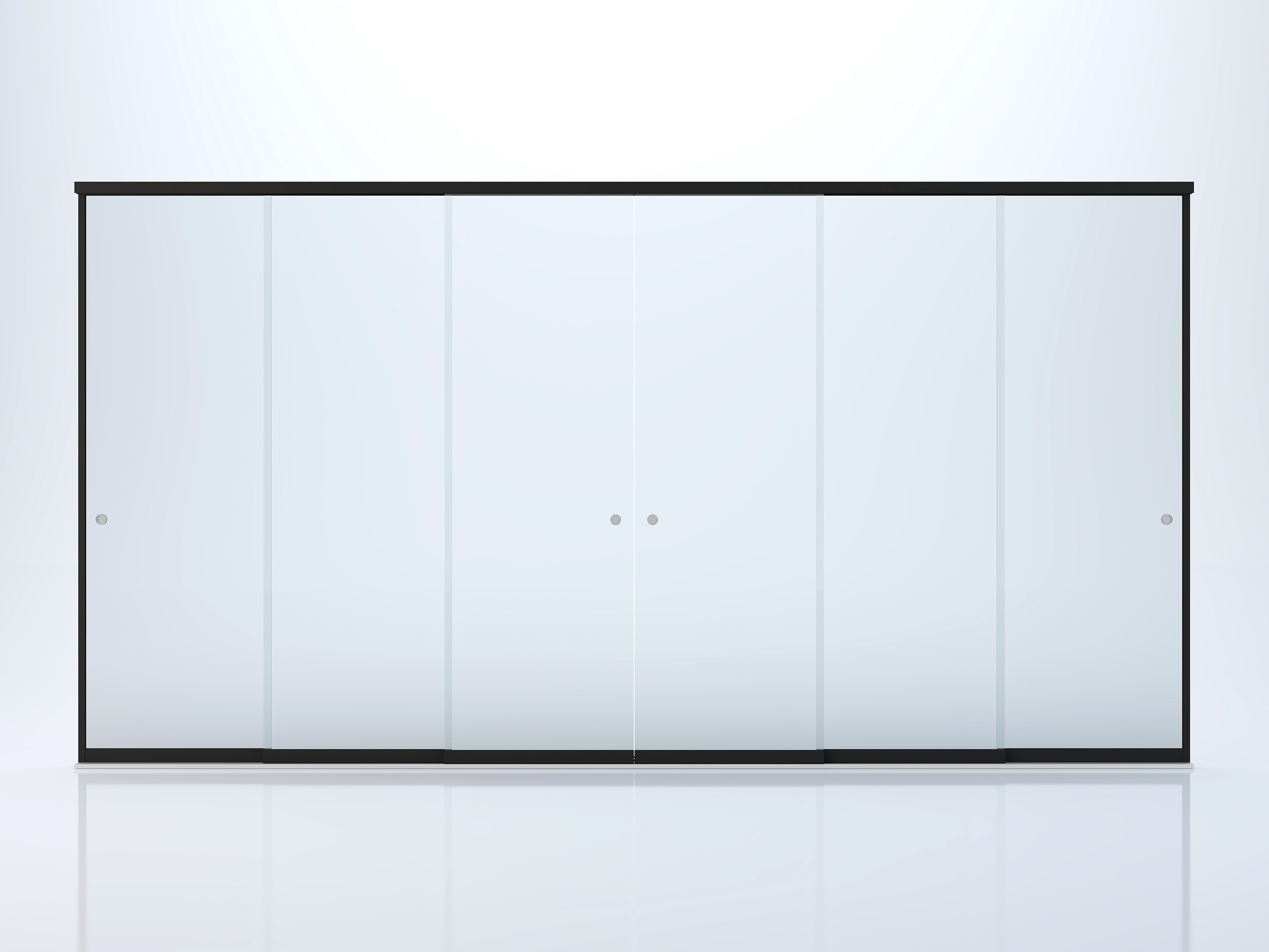 View from the outside: 3 rails and 6 sliding sections, frameless-type glass sliding doors.
