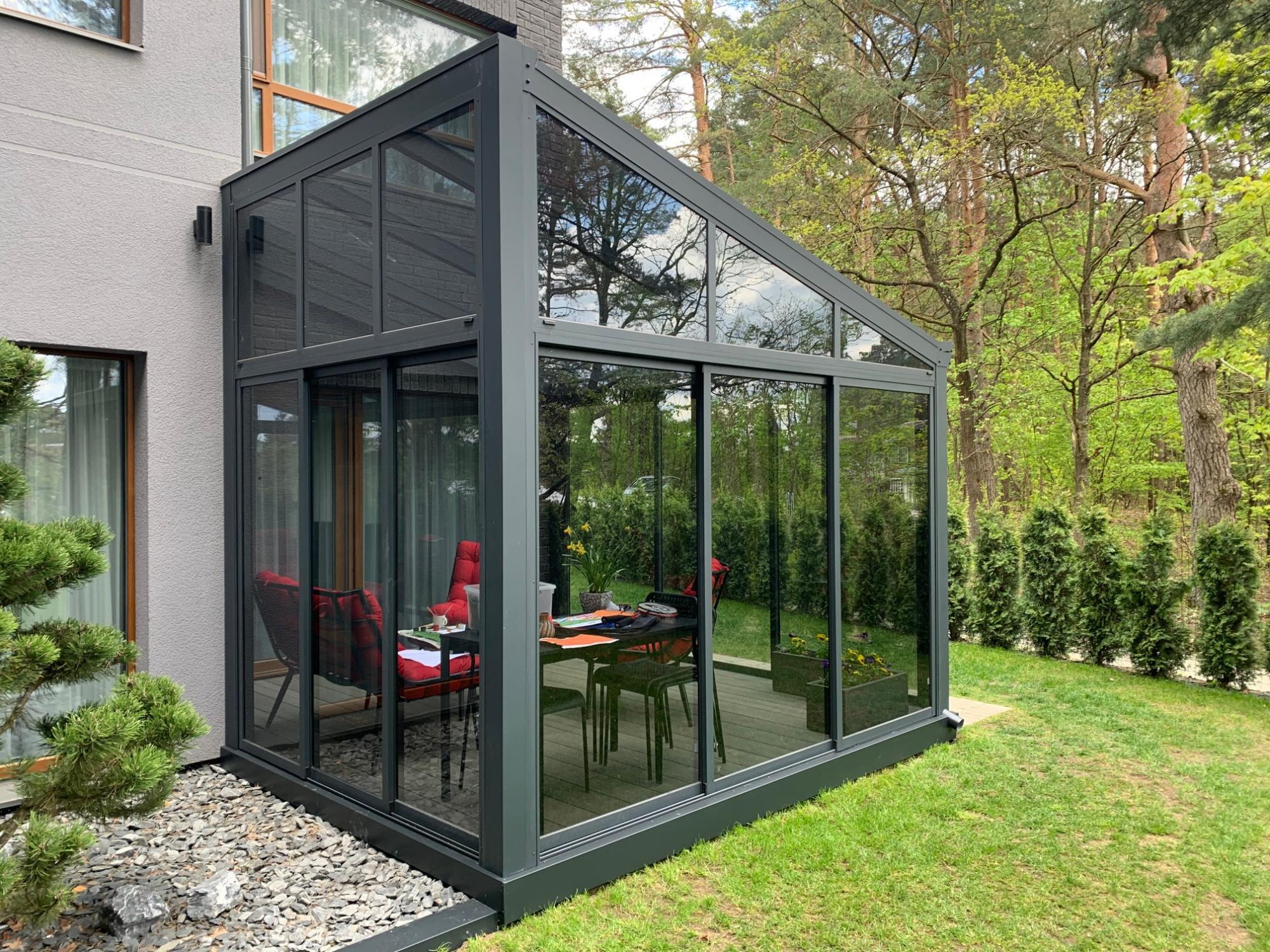 Fixed ALU not isolated winter garden / balcony / terrace glazing system with mini ALU profiles. This system is for not-isolated or minimal isolated rooms. This system we offer with 4mm or 5mm tempered glasses, or with 2 layer (Low-E) of glass. Max height is 2400mm. For more information about this product, please, go to section “PRODUCTS”.